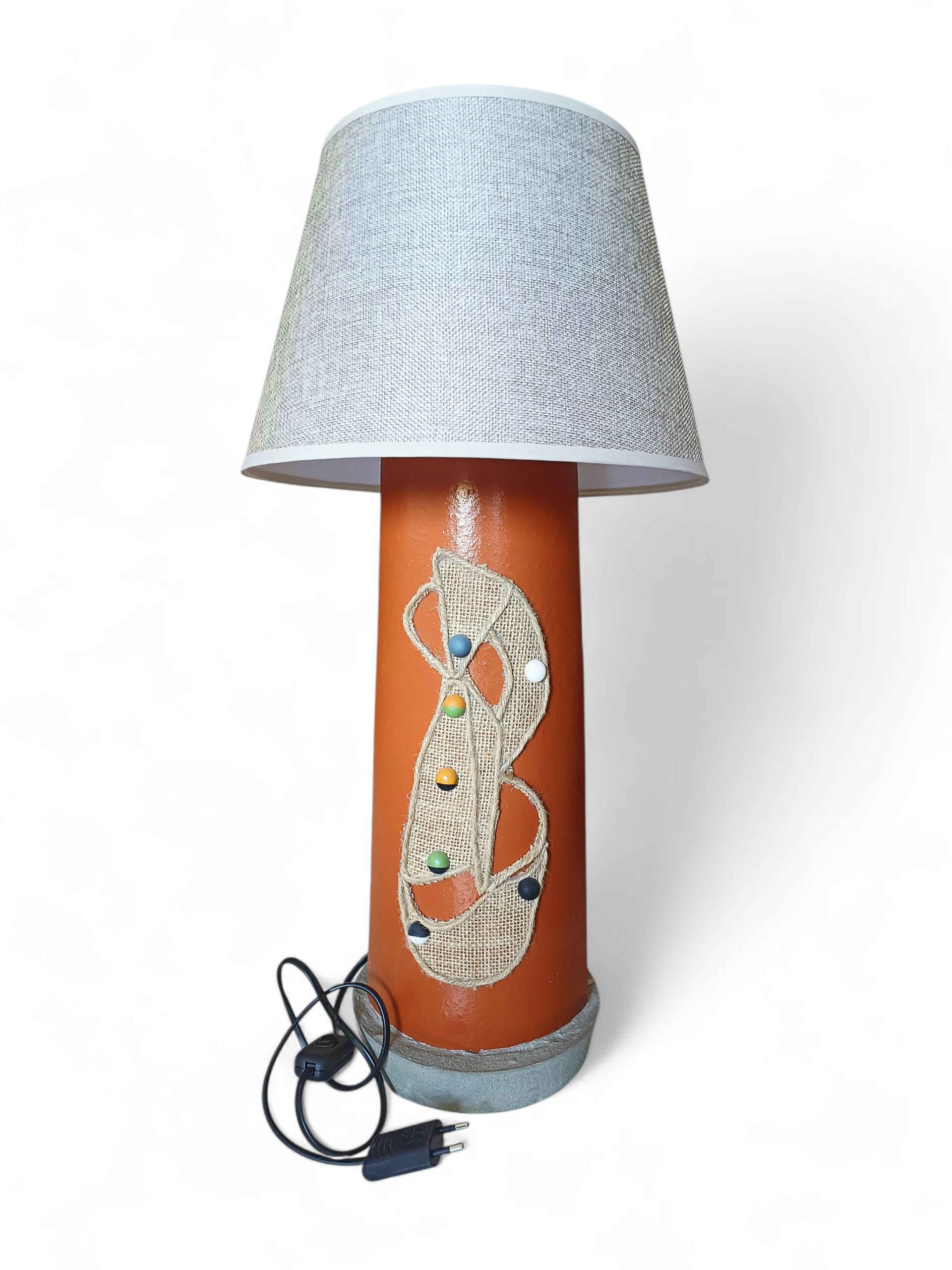 Peça decorativa, feito em cimento e pintada à mão, com dois elementos em branco e preto.